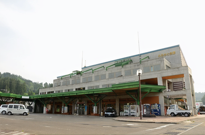 そんな松代の玄関口、国道253号沿いにあるのが、道の駅「まつだいふるさと会館」です。鉄道「ほくほく線」の「まつだい駅」に併設されたこの道の駅は、木のぬくもりが感じられるモダンな空間。お土産処やレストラン、コンビニはもちろん、ゆっくり休憩できるスペースも完備しています。